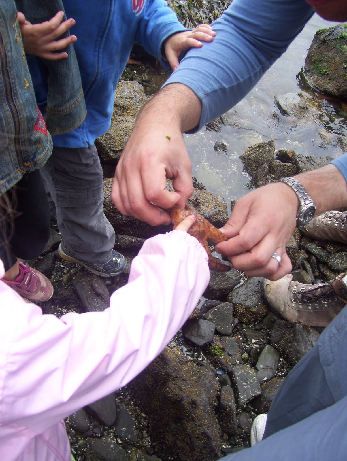 When my sister Jill and her family came to visit over the 4th of July we visited Moran State Park on the other side of Orcas Island - here are some pictures of this beautiful park. We also have a beach that we can walk to from the house we are staying at, but there are no starfish at this beach. One night we walked to the beach that is close to us, as a family, and the girls prayed to see a sea creature and when we got there out of the water poked a seal! Today we saw a bald eagle fly in front of us and perch on a tree! But we didn't have a camera, :( so no pictures.....